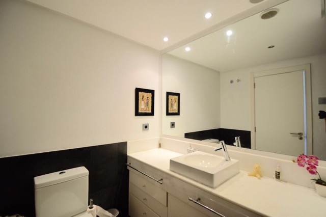 2 baños, uno en suite con bañera y el otro con ducha, ambos revestidos con piedra de pizarra en zonas de agua.