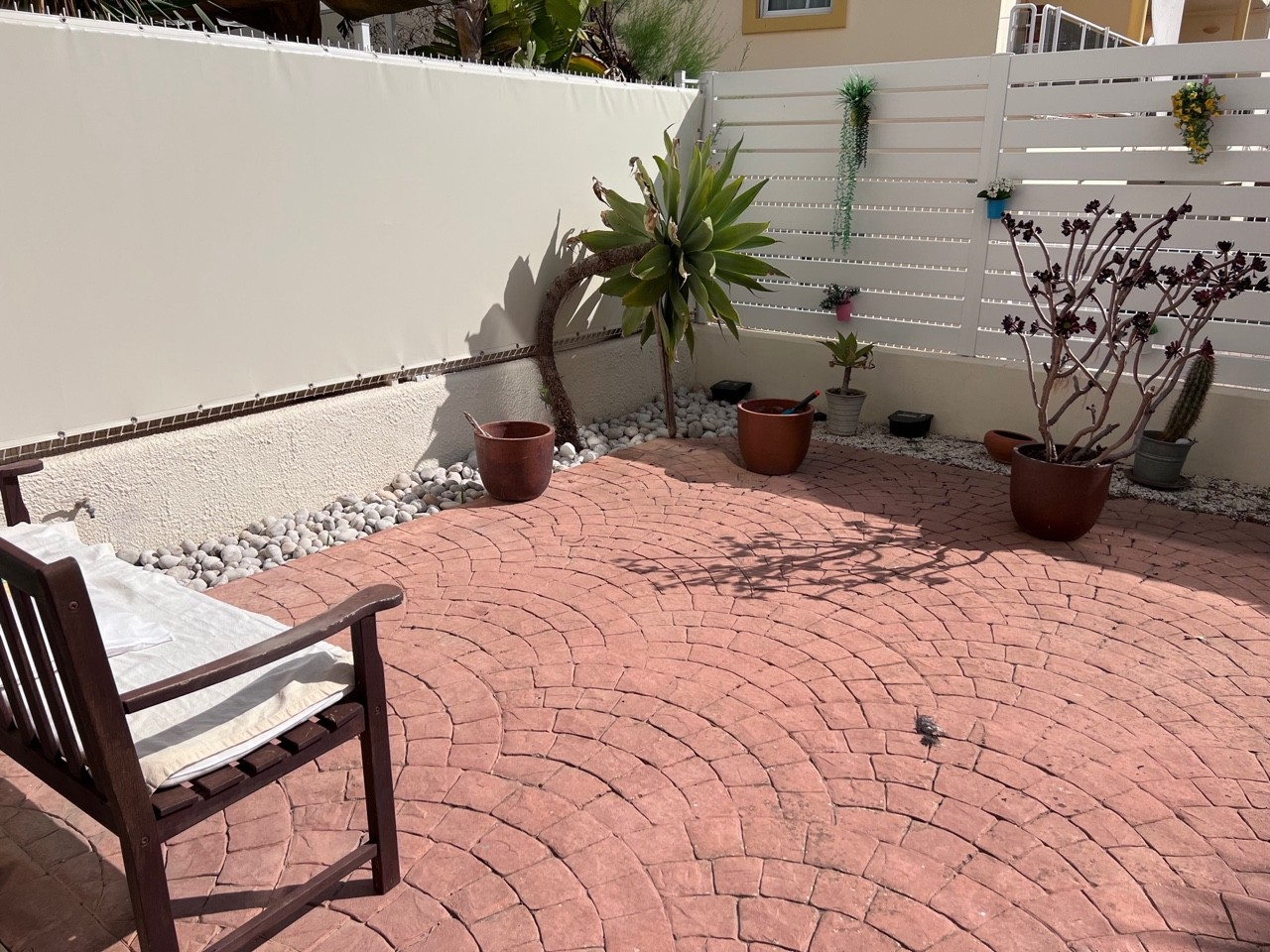 En la última planta de la vivienda se encuentra la hoja de la corona, una coqueta azotea con una zona de chill out con sus tumbonas y un comedor al fresco con vistas al mar de donde apreciar la brisa marina a diario. Unos toldos refuerzan la privacidad dando la sombra que tanto se necesita durante los meses más cálidos.