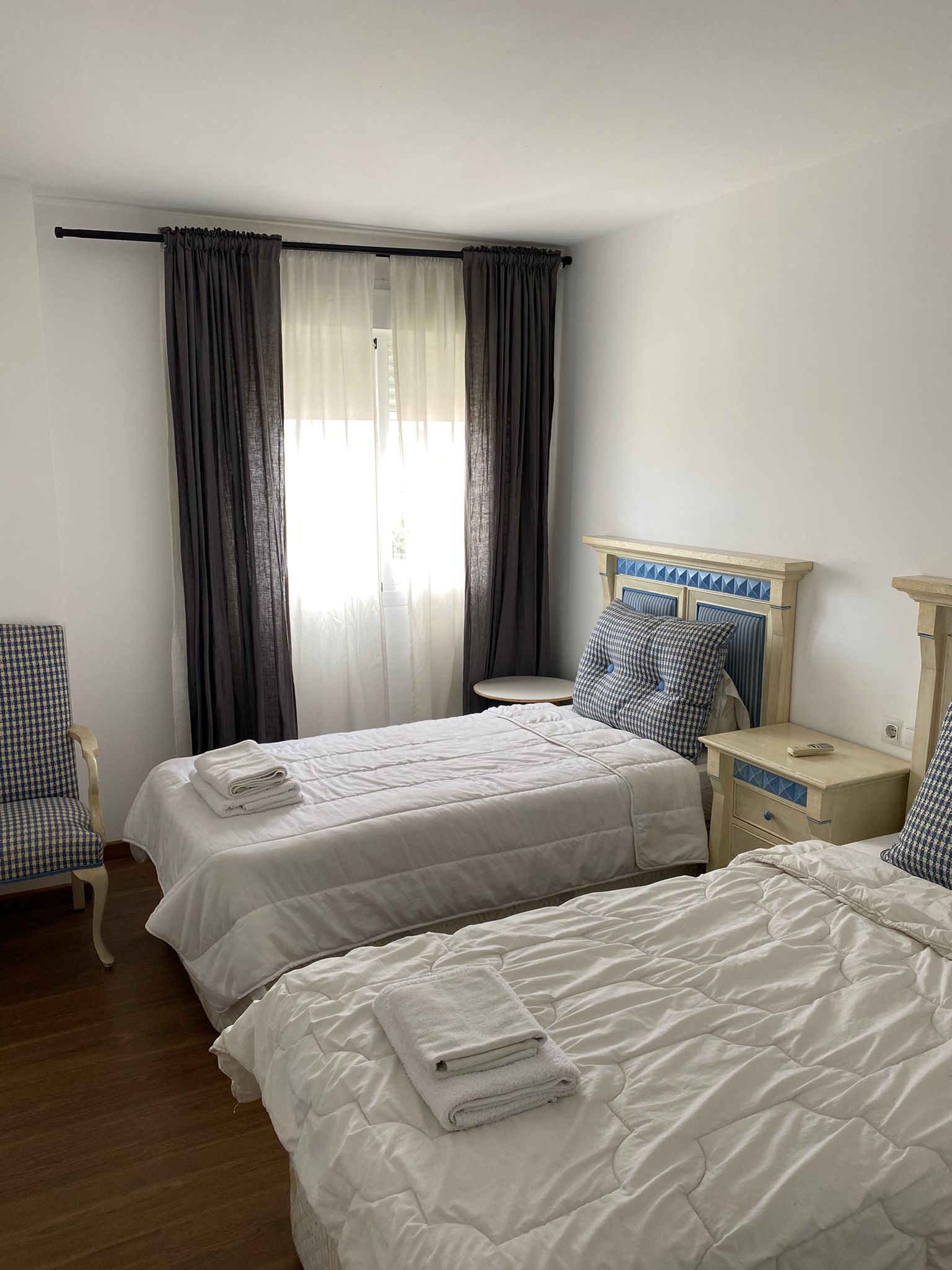 El apartamento dispone de 3 dormitorios dobles y dos baños, uno de ellos en suite con bañera jacuzzi y el otro con ducha.