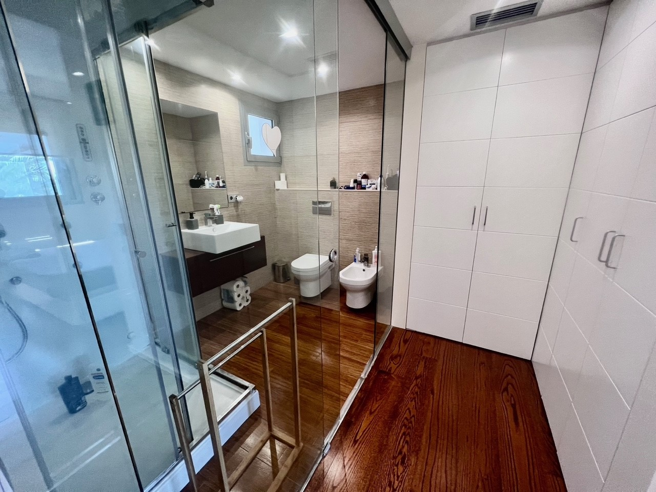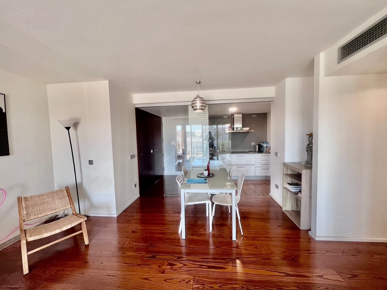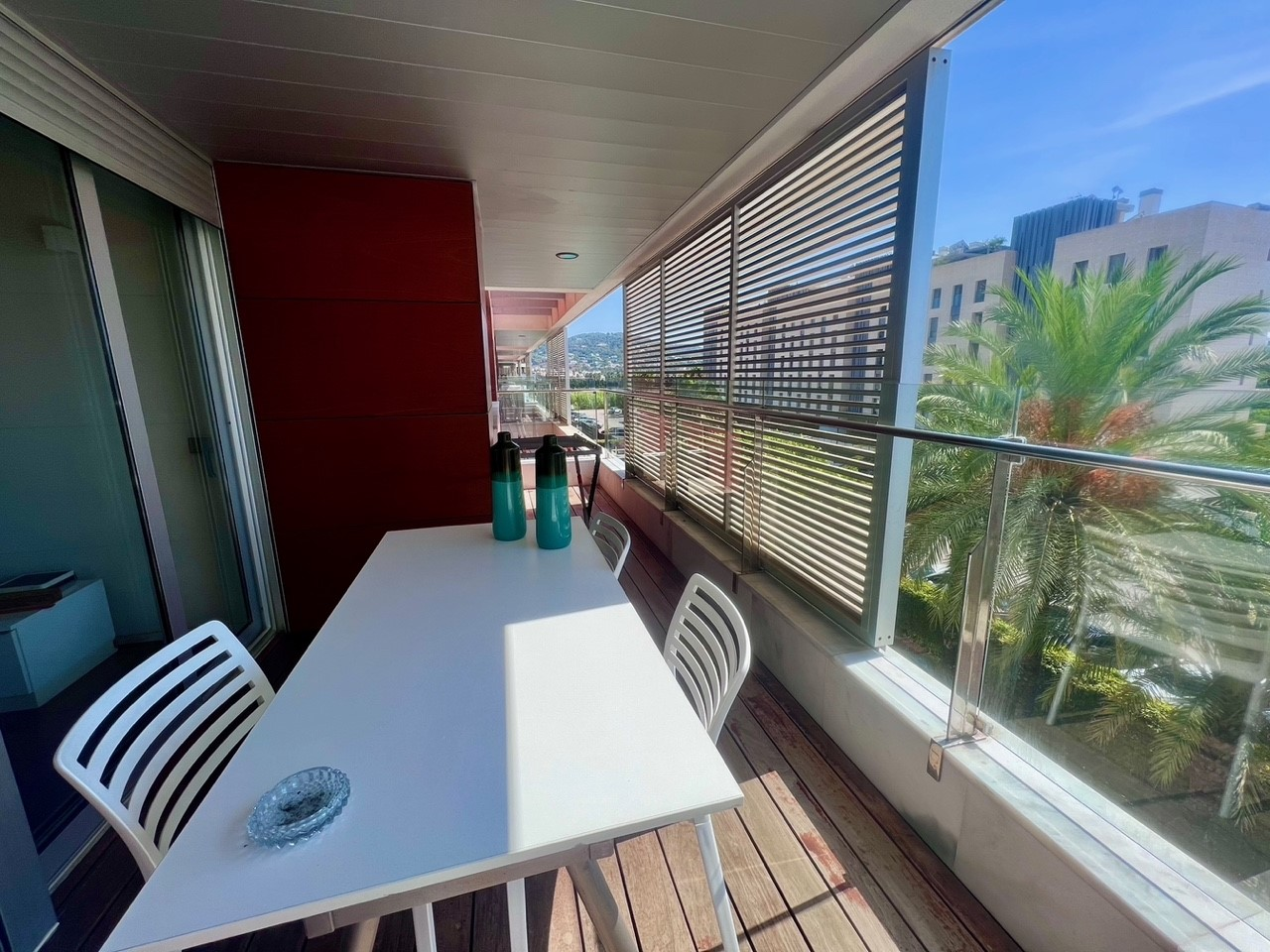 Dispone de 2 habitaciones dobles, 2 baños uno de ellos en suite con ducha hidromasaje, salón comedor con salida a la amplia terraza, suelos de madera maciza de roble, sistema de demótica (pantalla táctil), cocina totalmente equipada, amplia terraza.