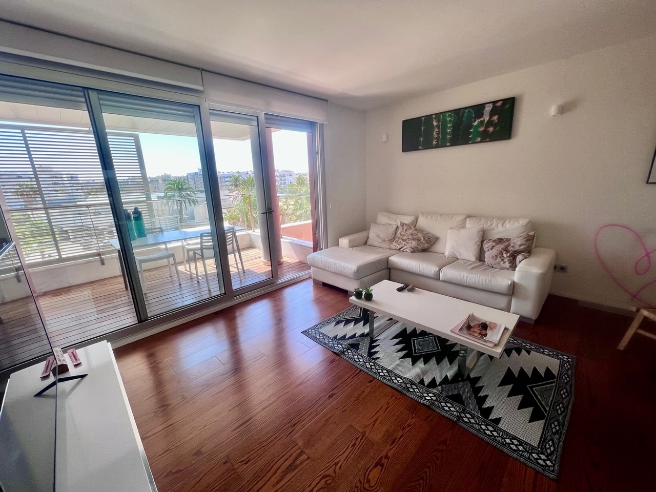 Este apartamento se encuentra en una de las mejores zonas de ocio en Ibiza cercana a restaurantes y cabarets actuales como Roto, Lío, Pacha, Cipriani….