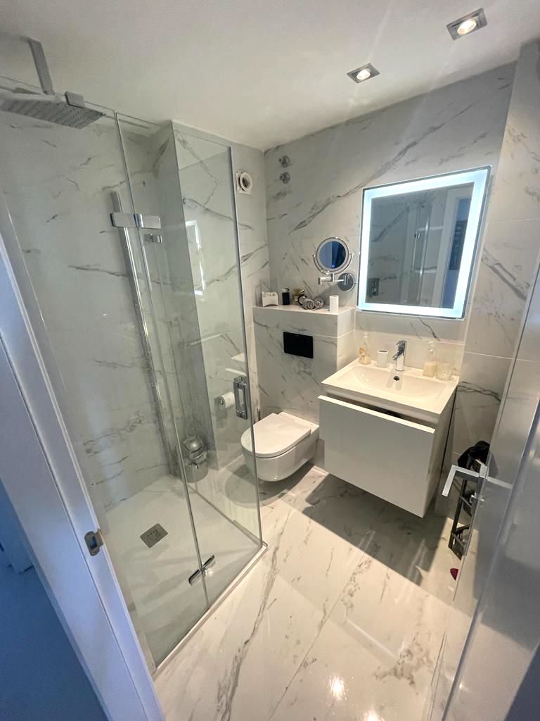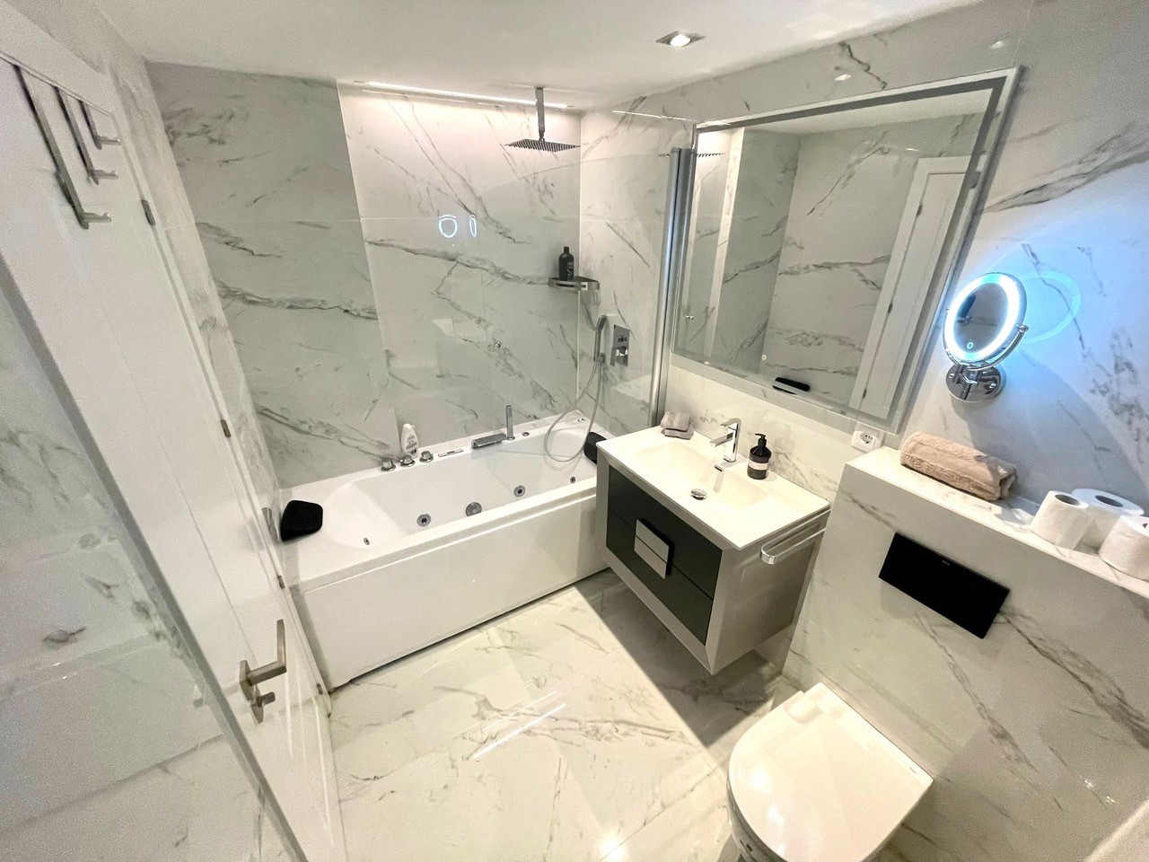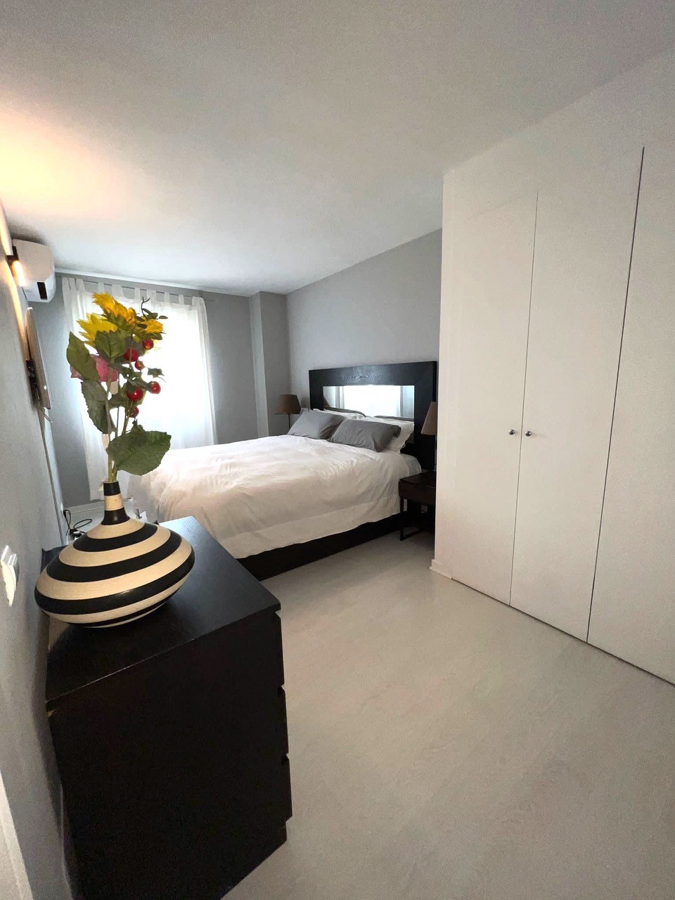 El apartamento ha sido reformado en su totalidad y dispone de 3 dormitorios dobles y dos baños, uno de ellos en suite con bañera jacuzzi y el otro con ducha.