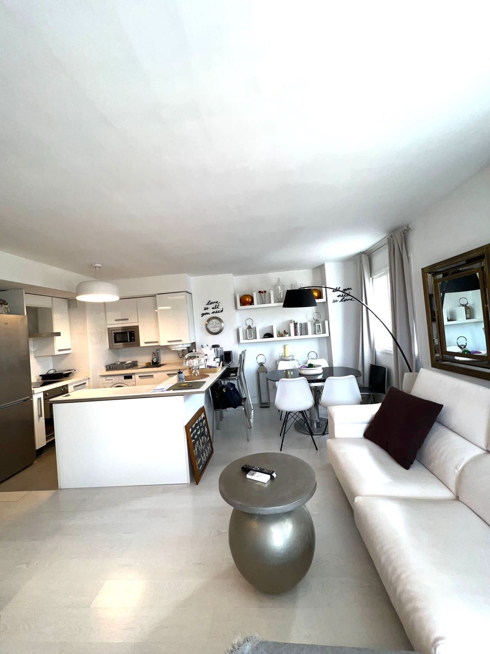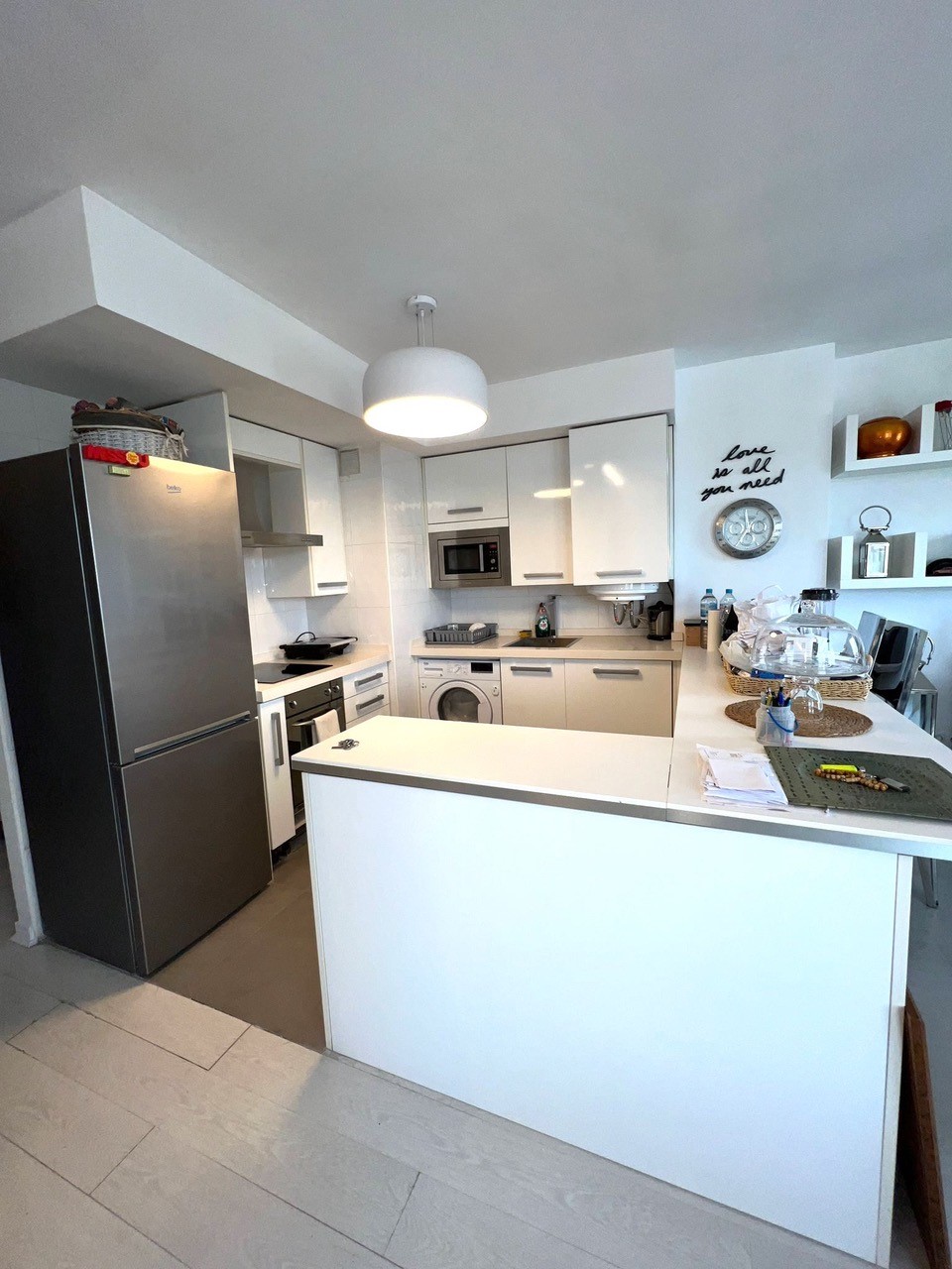 Tiene una bonita terraza con vistas al mar que se accede desde el salón, al ser una planta alta tiene mucha luminosidad. La cocina está completamente equipada y abierta al salón.