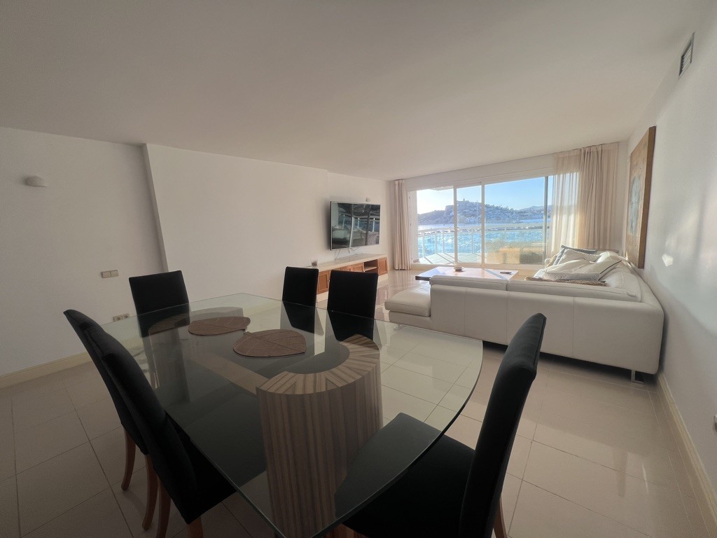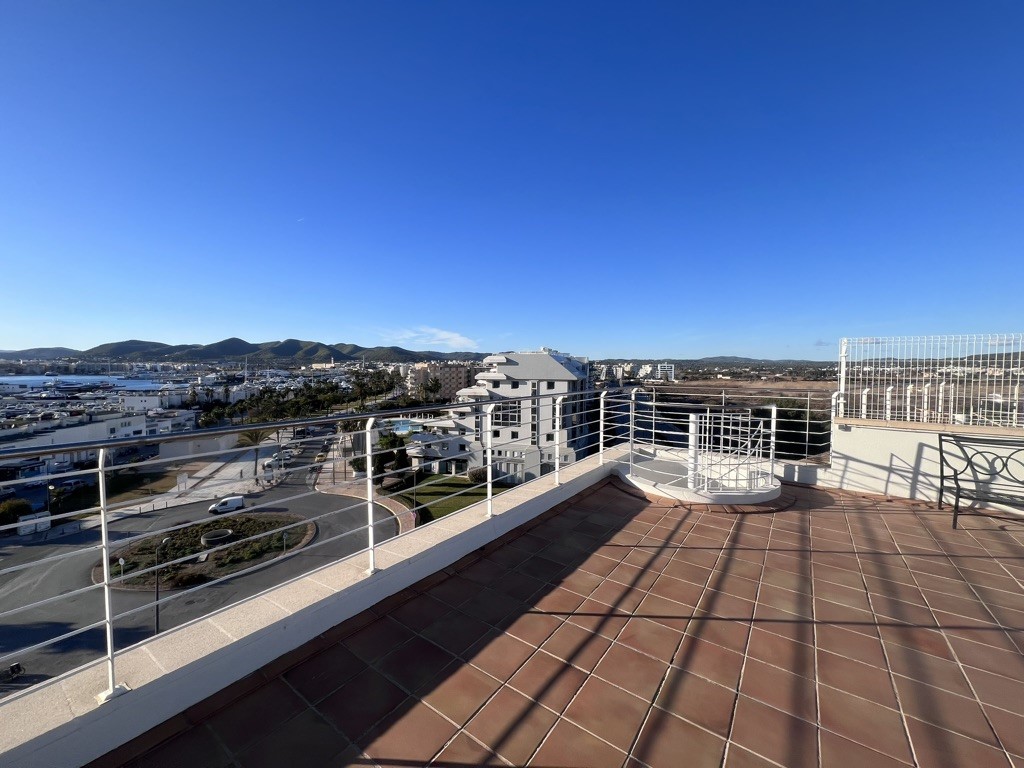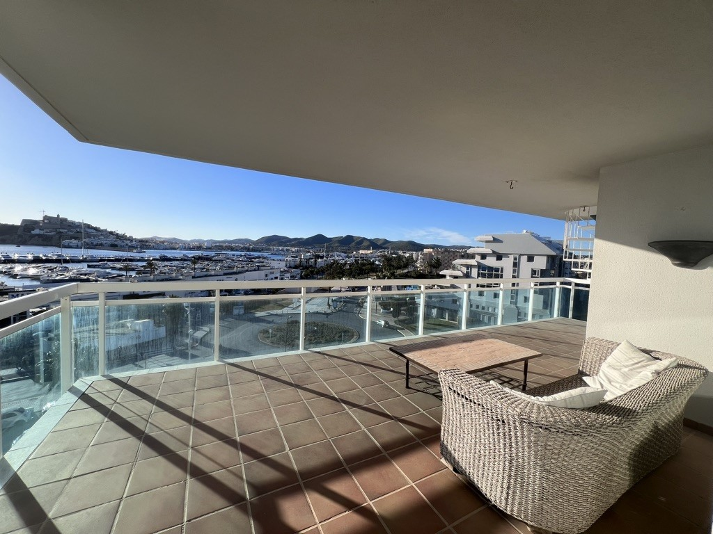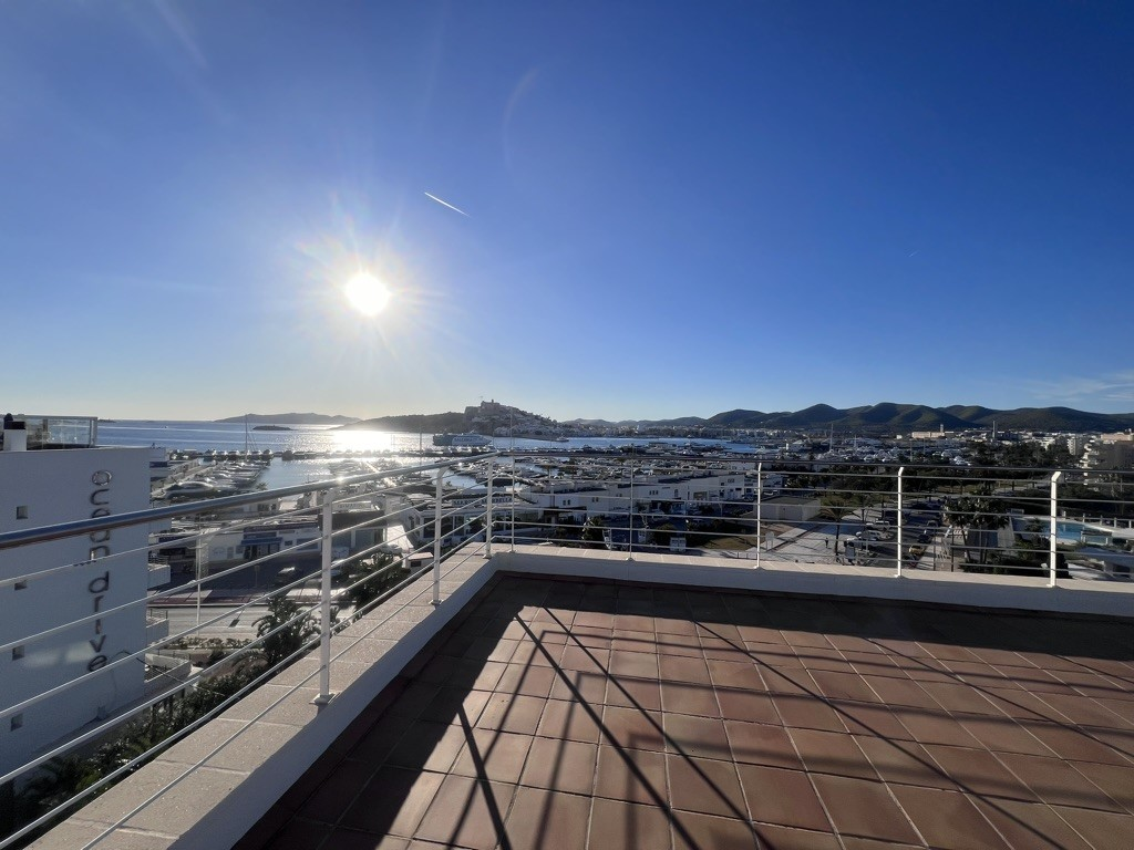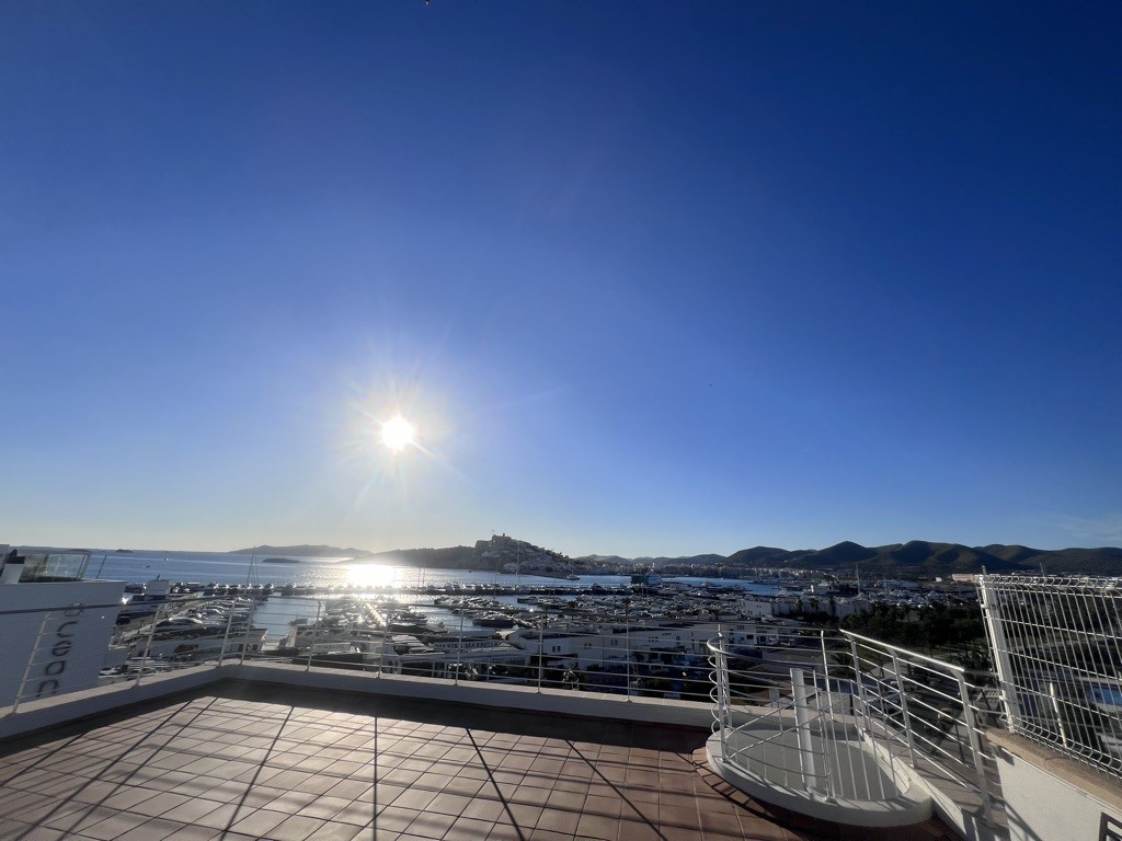 Impresionantes vistas al mar, Dalt vila y puerto deportivo desde este majestuoso ático con solárium privado.