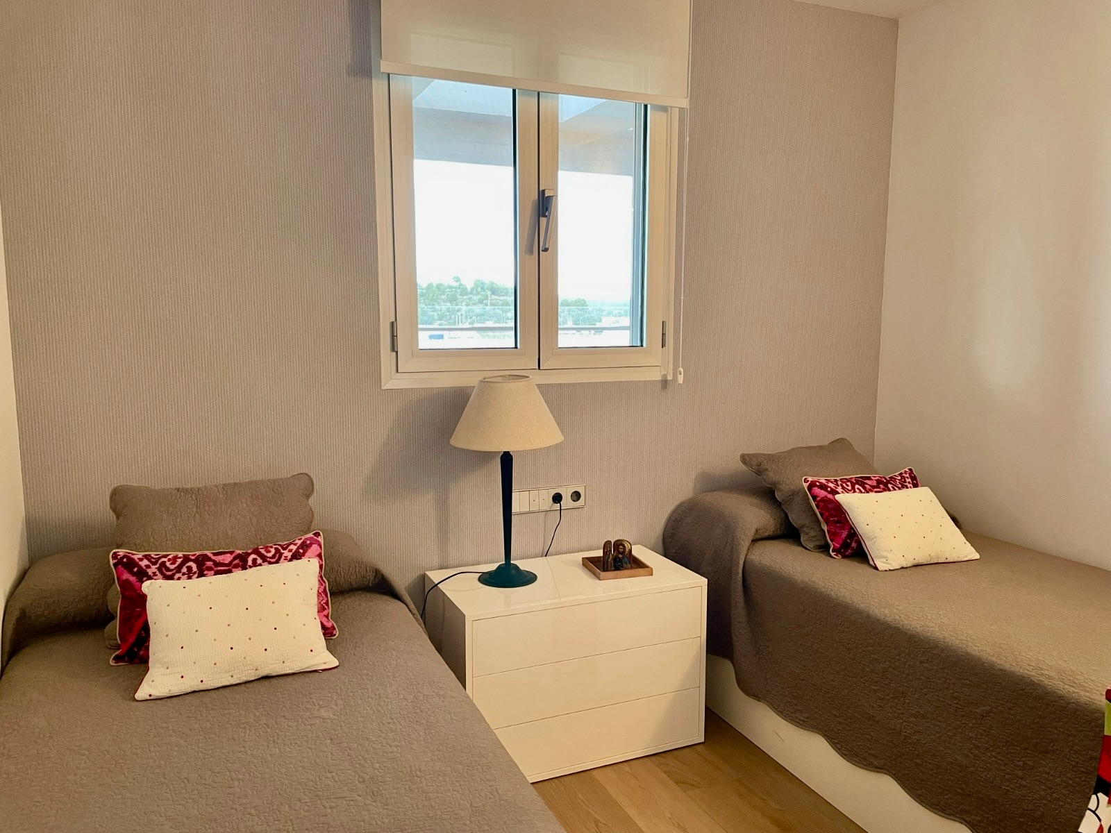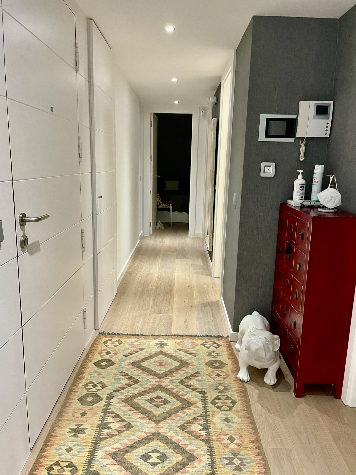 Los otros dos dormitorios disponen de armarios empotrados y comparten un baño. Dispone de una plaza de garaje cubierta en una urbanización cerrada con conserje, jardín y piscina comunitaria.