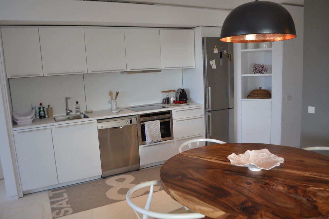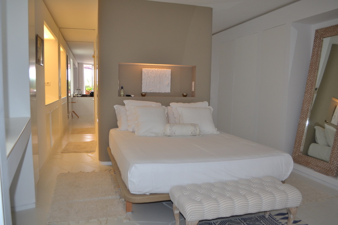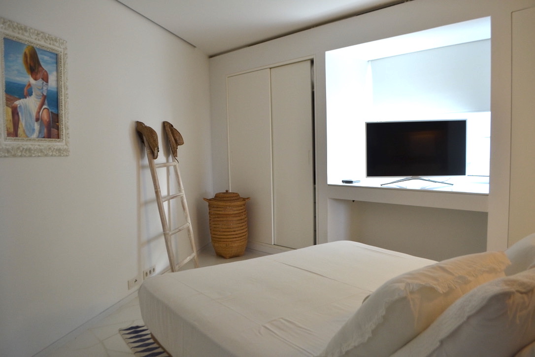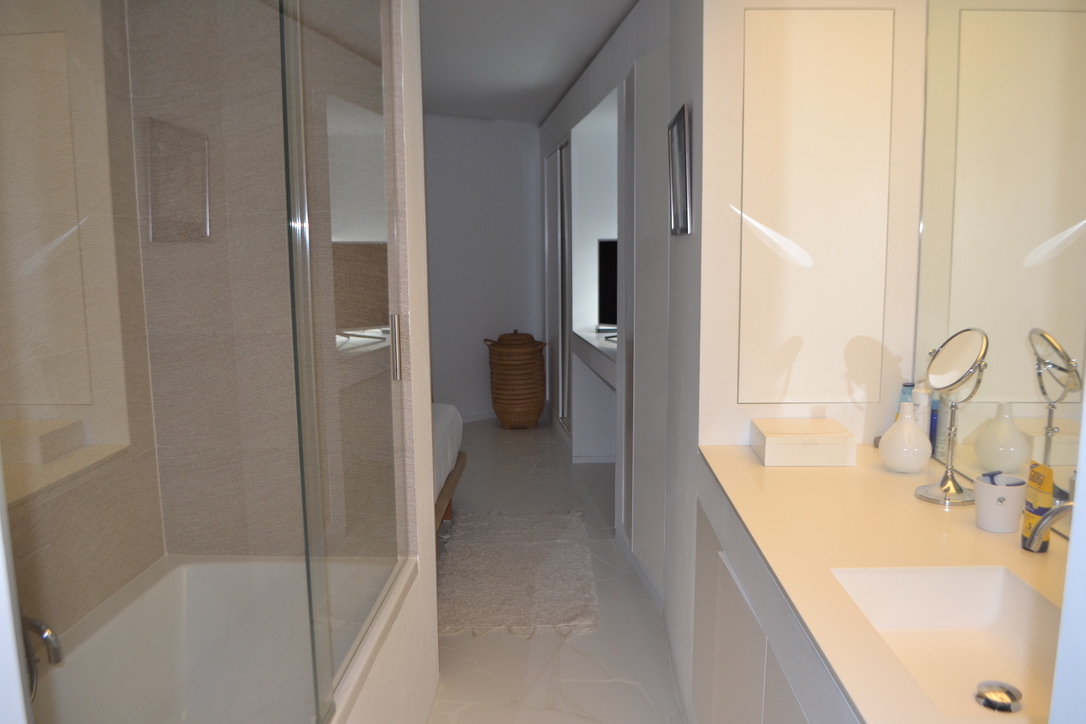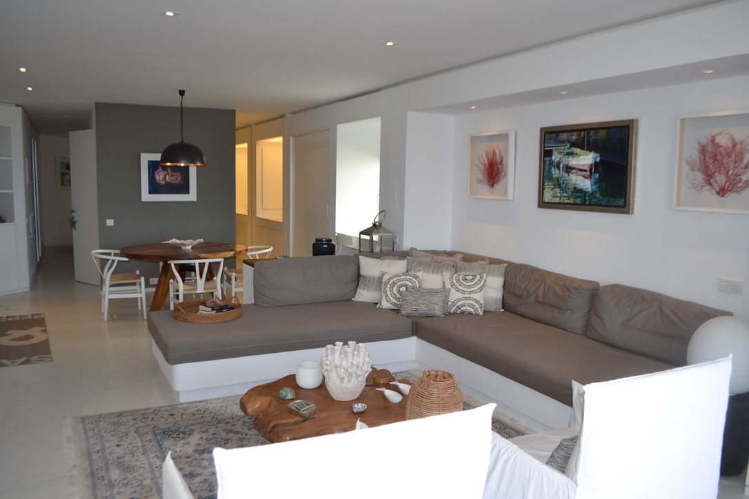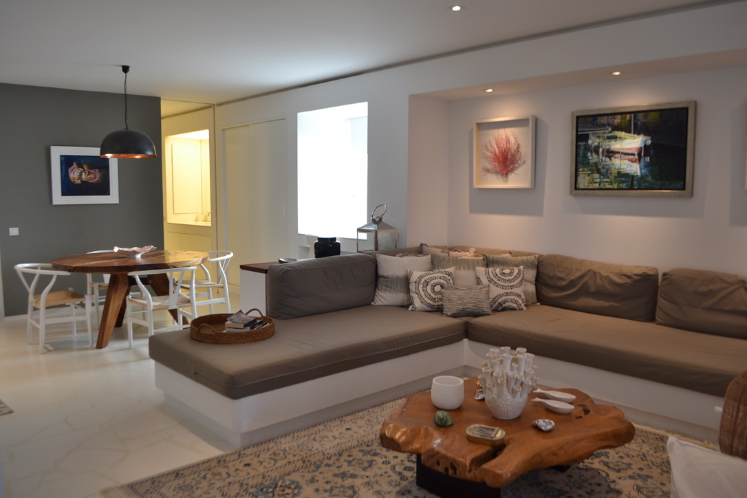 El apartamento ha sido diseñando en su interior por ksar Living con mobiliario de acogedor y de calidad con marcas reconocidas. La vivienda tiene un gran salón comedor con salida a la amplia terraza. En el salón esta la cocina en un lateral totalmente equipada. Hay dos baños completos y un amplio dormitorio. La vivienda tiene aire acondicionado por conductos. Esta urbanización es una de las mejores en Ibiza ya que dispone de piscina comunitaria así como gimnasio y sauna. Seguridad las 24 horas del día con petición de documentación para su accesibilidad.