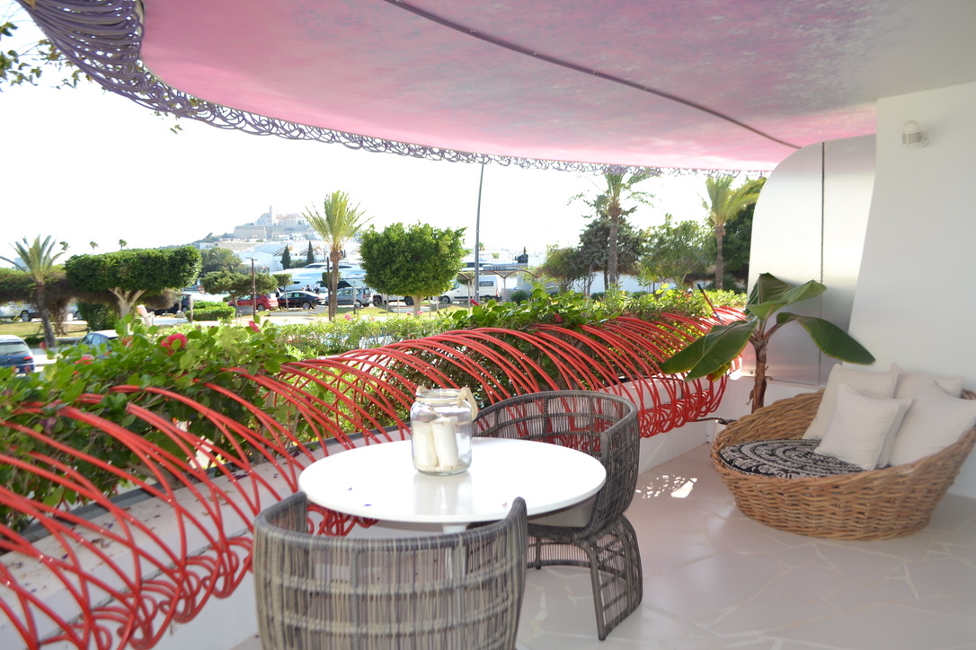 BOAS, en uno de los mejores edificios y en Paseo Marítimo de Ibiza encontramos esta maravillosa vivienda de 114,41 m2 en su totalidad de los cuales 96 m2 pertenecen al interior del apto y los 18,41 m2 a la preciosa terraza con vistas a las murallas y catedral de Ibiza.