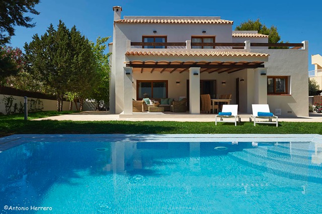 1000 m2 de parcela y 350 m2 construidos en dos plantas rodeada de un amplio jardín, situada en el sur oeste de la isla cerca de las mejores playas con puesta de sol de Ibiza, Cala Conta, Cala Bassa y Cala Tarida.