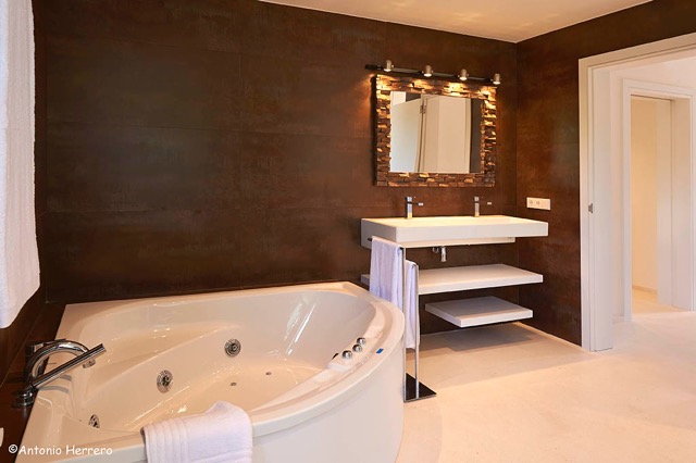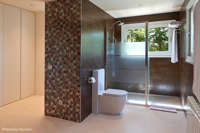 Consta de un gran garaje subterráneo de tres plazas comunicado con el interior de la casa.