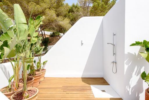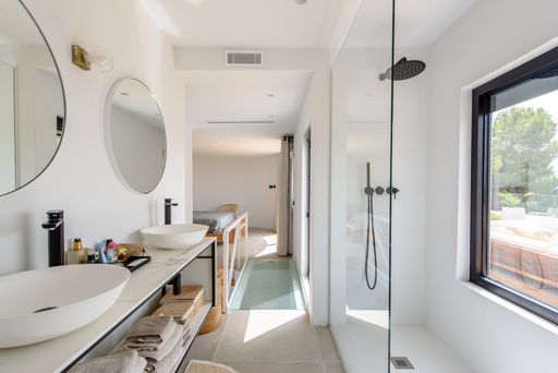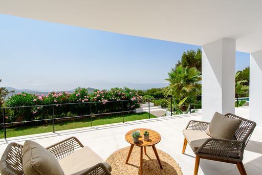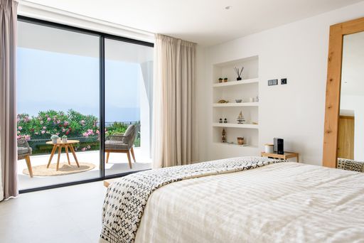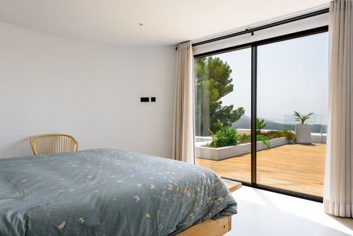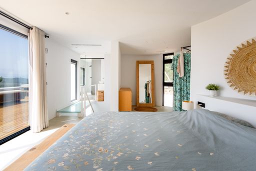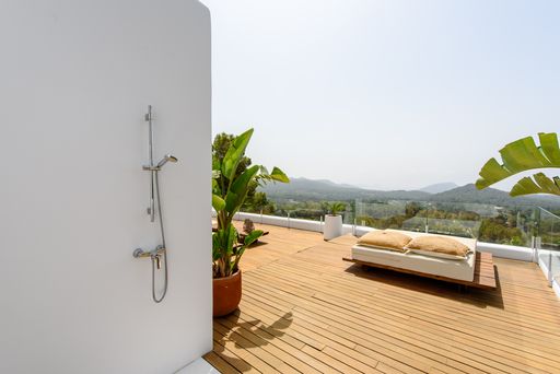 En la primera planta se encuentra el dormitorio principal con baño en-suite y vestidor. Aquí tiene una enorme terraza con ducha exterior y de nuevo fantásticas vistas al mar y a la montaña.