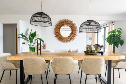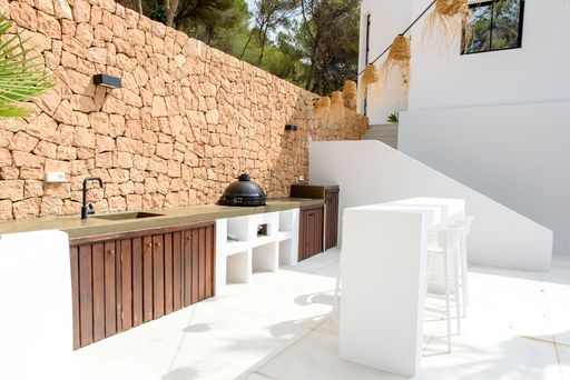 Todas las habitaciones tienen acceso directo a la zona ajardinada con piscina infinita y una gran cocina exterior y zona chill-out cubierta con una gran mesa de comedor.
