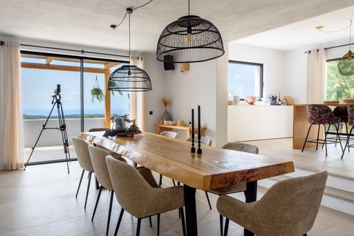 Esta hermosa y moderna villa está situada en una zona tranquila y ofrece impresionantes vistas al mar ya la montaña.