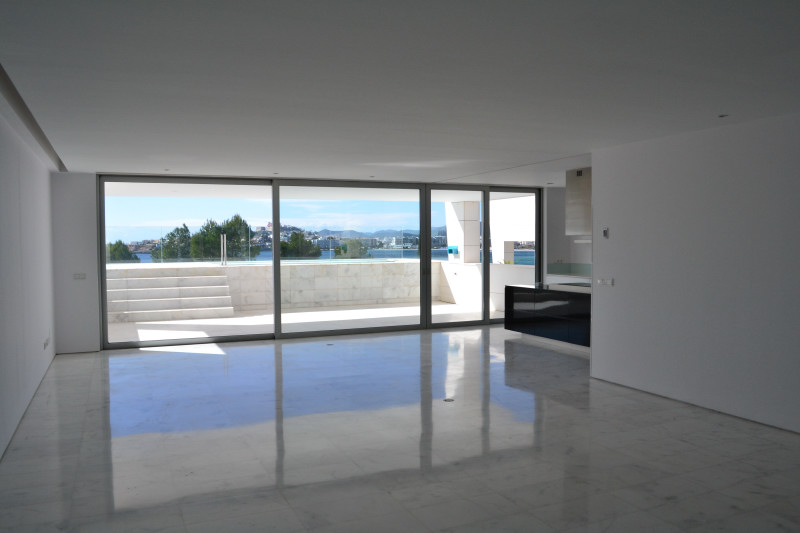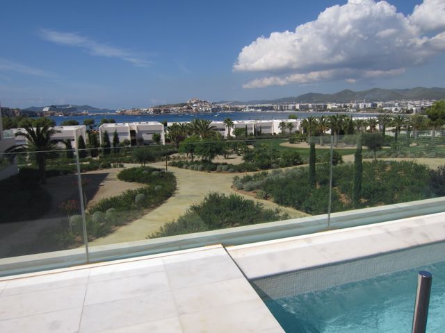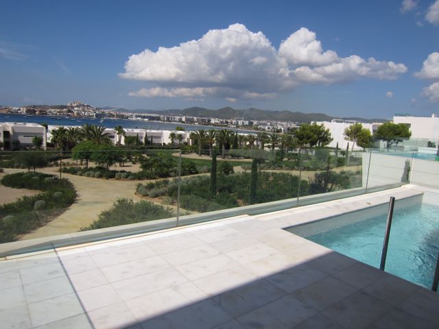 This first floor apartment has a private pool and overlooks the beautiful gardens and talamanca bay. It features 3 bedrooms with en-suite bathrooms, and staff bedroom with bath and a guest bathroom. The very large sliding doors of the spacious living room give access to a private terrace with aprivate pool.Top quality apartment with advanced home automation system, designer kitchen, 2 cars garage and a storage area.Very peaceful and beautiful gardens for the most highest-standard residence of Talamanca bay with 24h security and alarge community pool surrounded by a comfortable lounge area