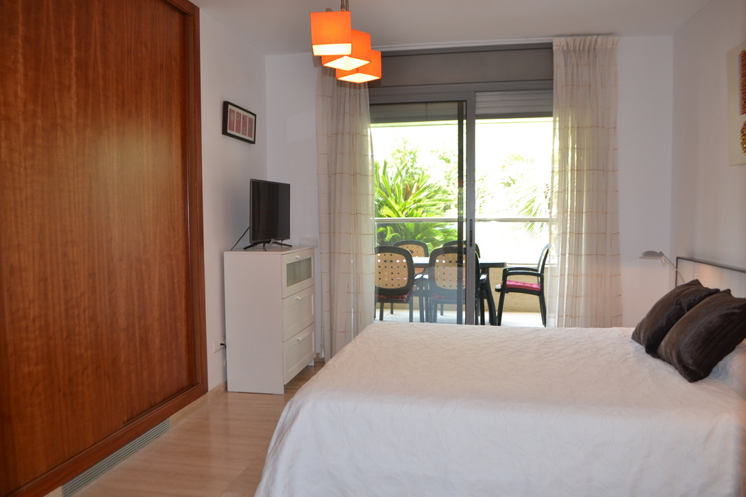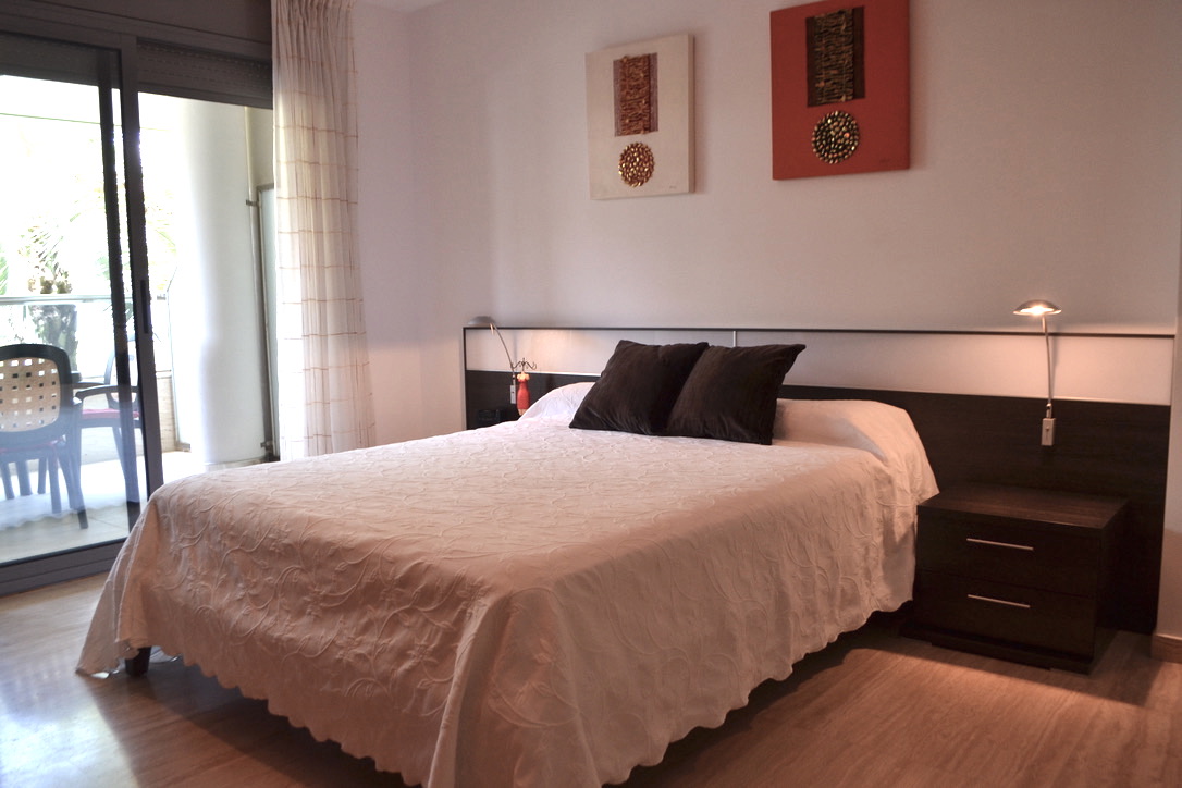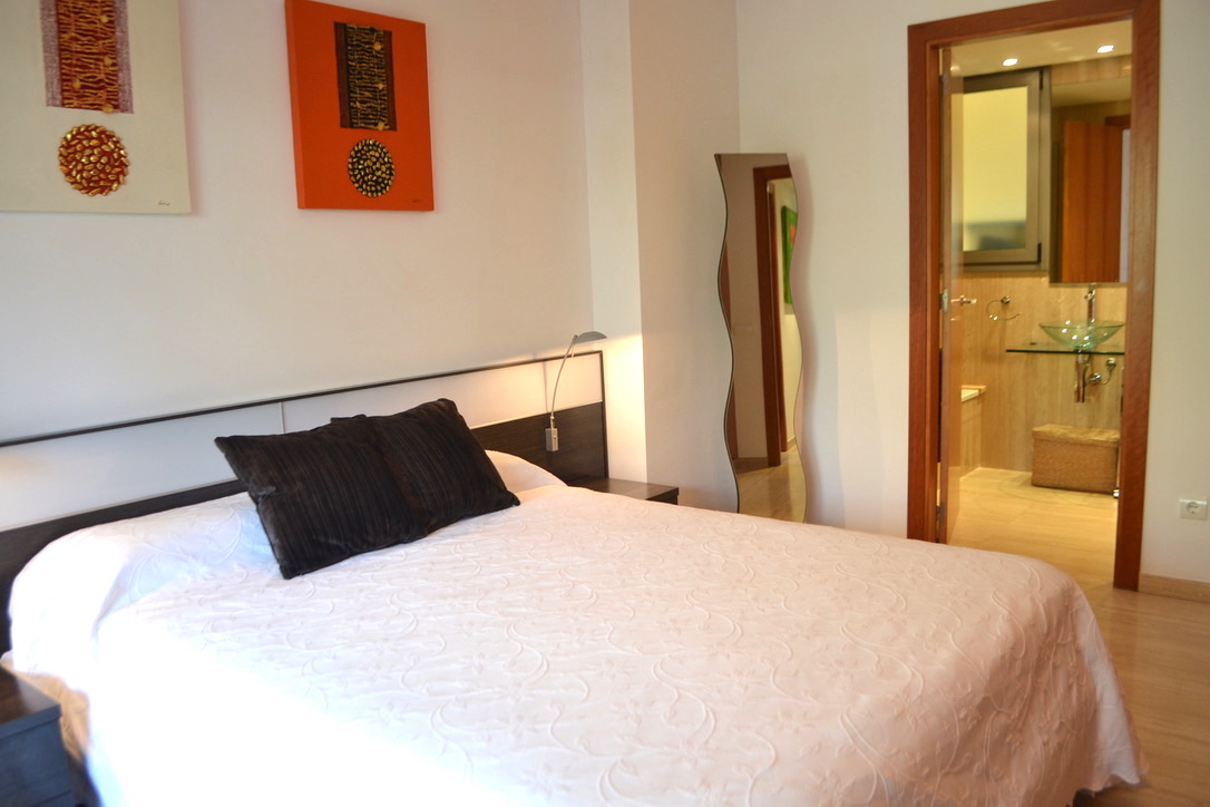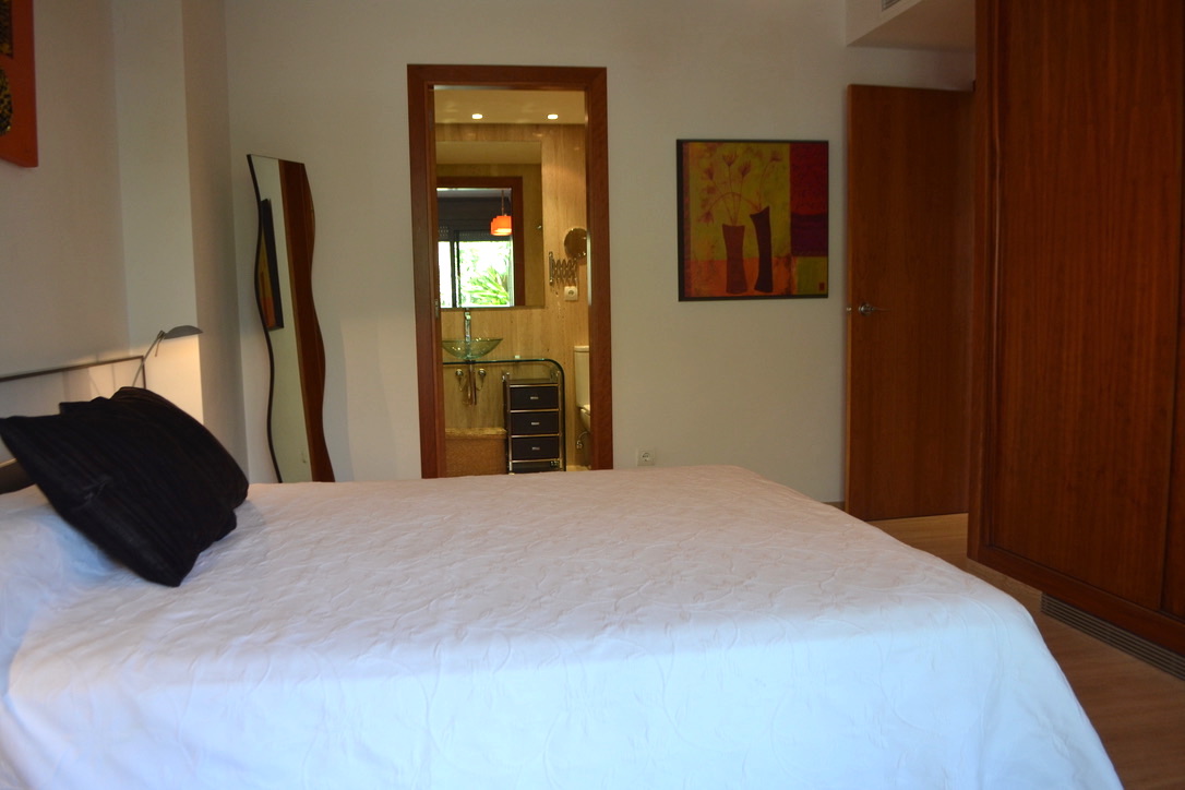 Esta bonita planta baja tiene mucha luz por no tener en frente ningún edificio cercano, tiene 2 dormitorios y 2 baños, uno de ellos en suite con bañera y otro con ducha.