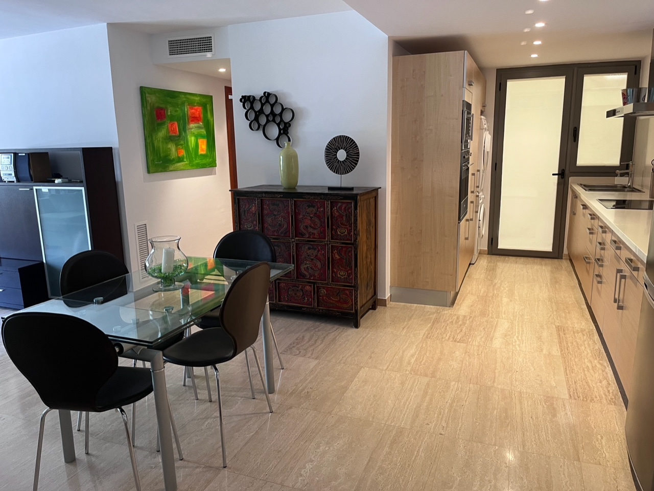 Cocina completamente equipada con salida a un patio interior privado.
