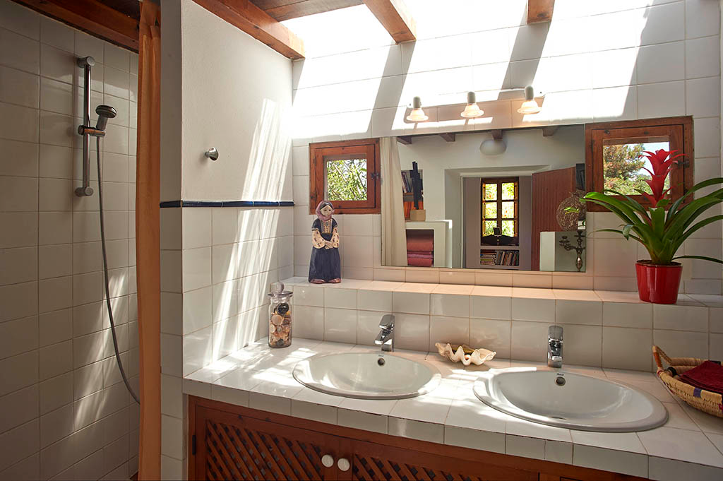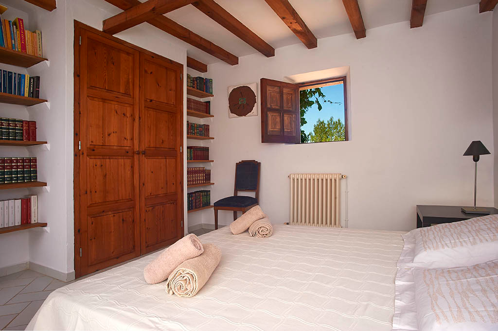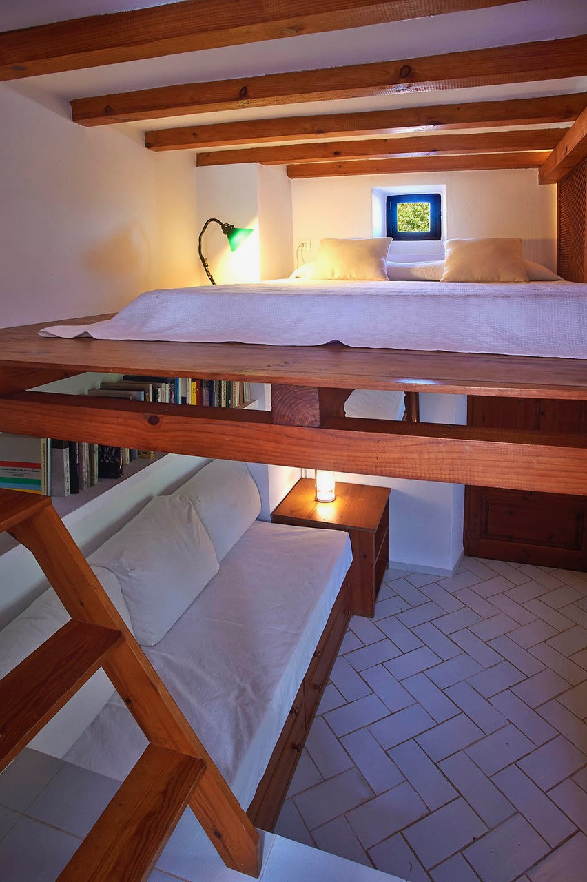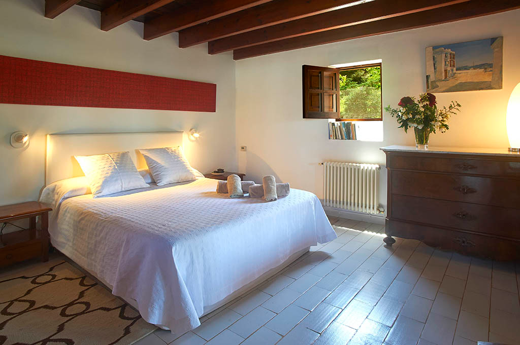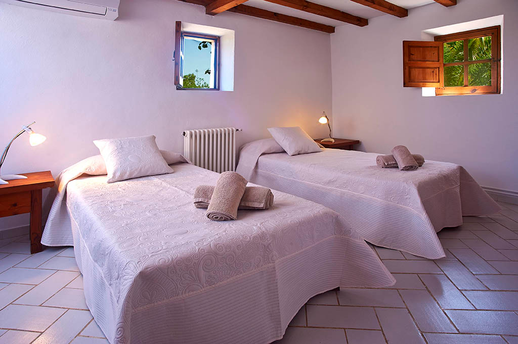 Casa en el barrio de Can Lluís, cerca de Jesús, la casa tiene 5 dormitorios, 3 de ellos con baño y un baño de invitados, 4 habitaciones con cama de matrimonio y una con dos camas, total para 10 personas, la casa tiene 250 m2 construidos y tiene un terreno de 2.500 m2 todo ajardinado, tiene aire acondicionado en todos los dormitorios, TV en salón, cocina completamente equipada con lavaplatos, microondas.