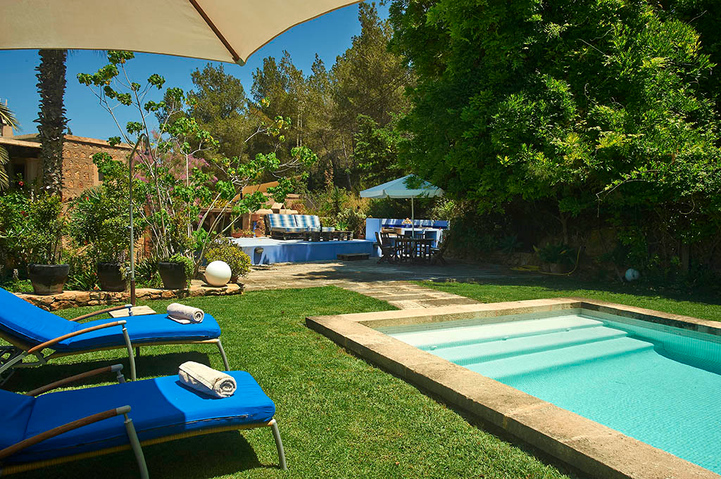 Villa en Jesús a 3 km de ibiza en el barrio de Can Lluís con piscina y un jardín muy bonito y bien cuidado.