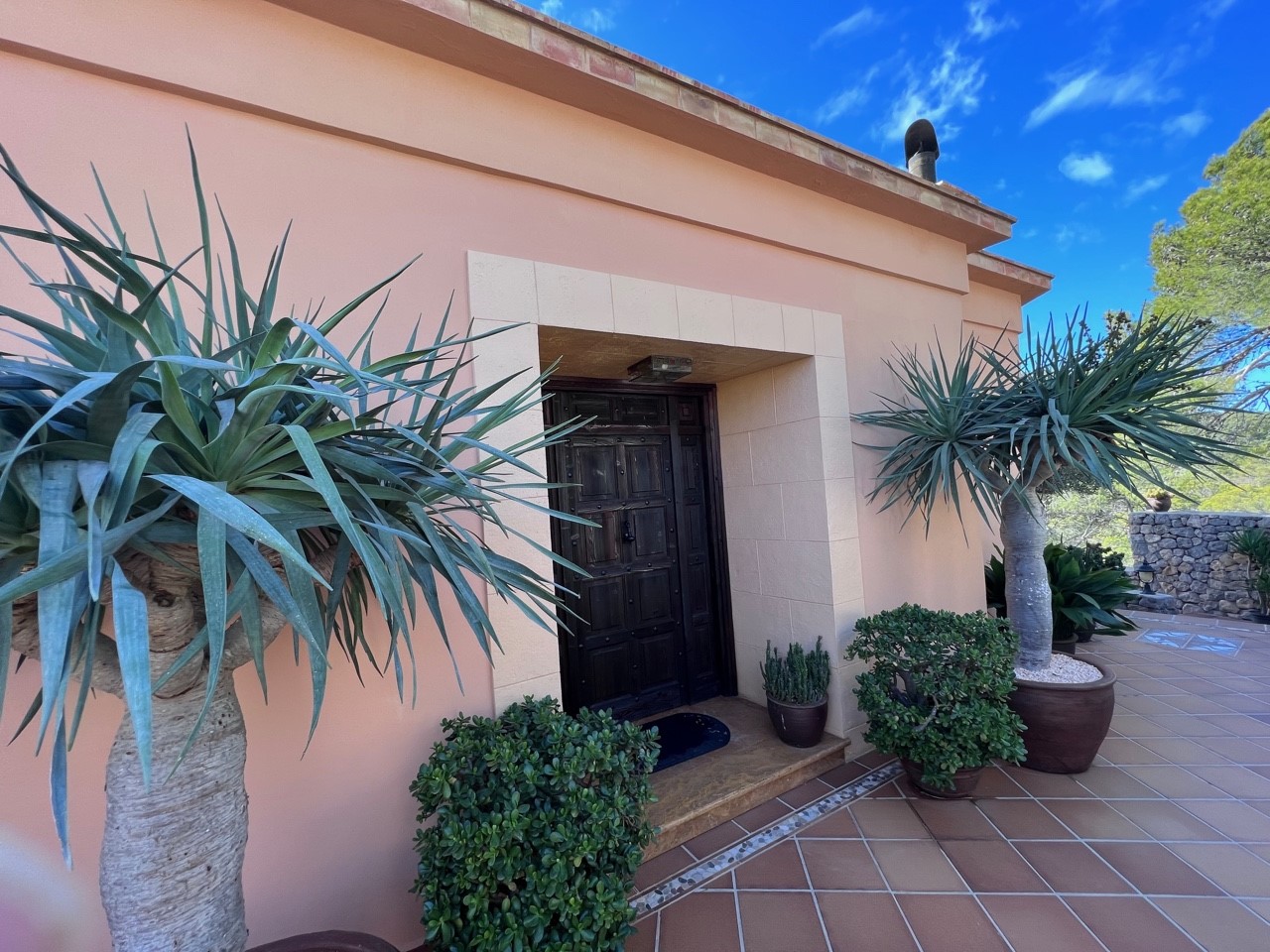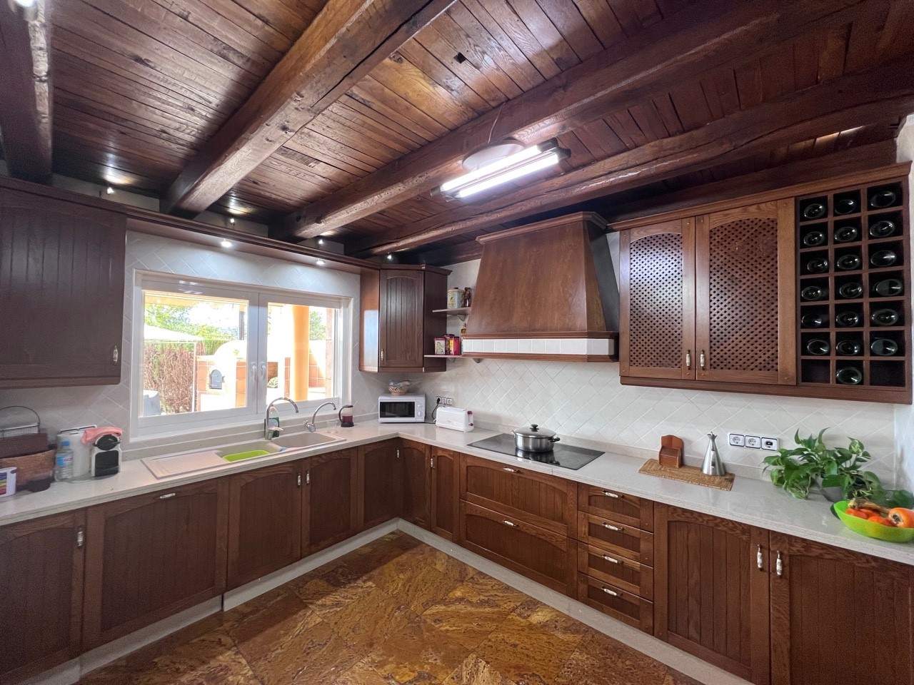 Dispone de garaje privado para dos vehículos, amplias zonas exteriores con vistas a la puesta del sol y el verde infinito de los pinares que la rodean, tiene también una piscina de espejo de agua de 60 metros cuadrados equipada con chorros / cascada / jacuzzi.